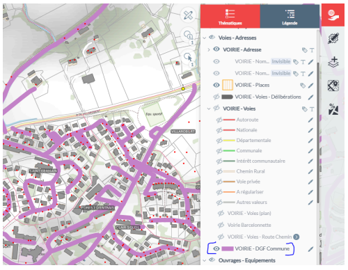 est cartographié dans la couche VOIRIE – DGF Commune.